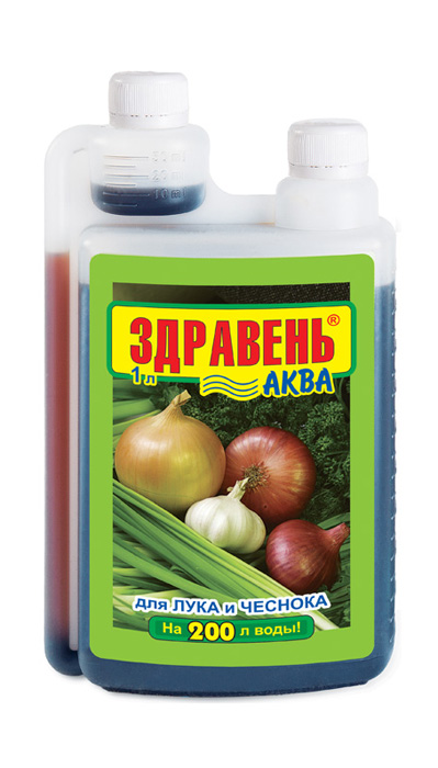 «Здравень-аква для лука и чеснока» — жидкое комплексное органоминеральное удобрение для корневых и внекорневых подкормок лука в личных подсобных хозяйствах.