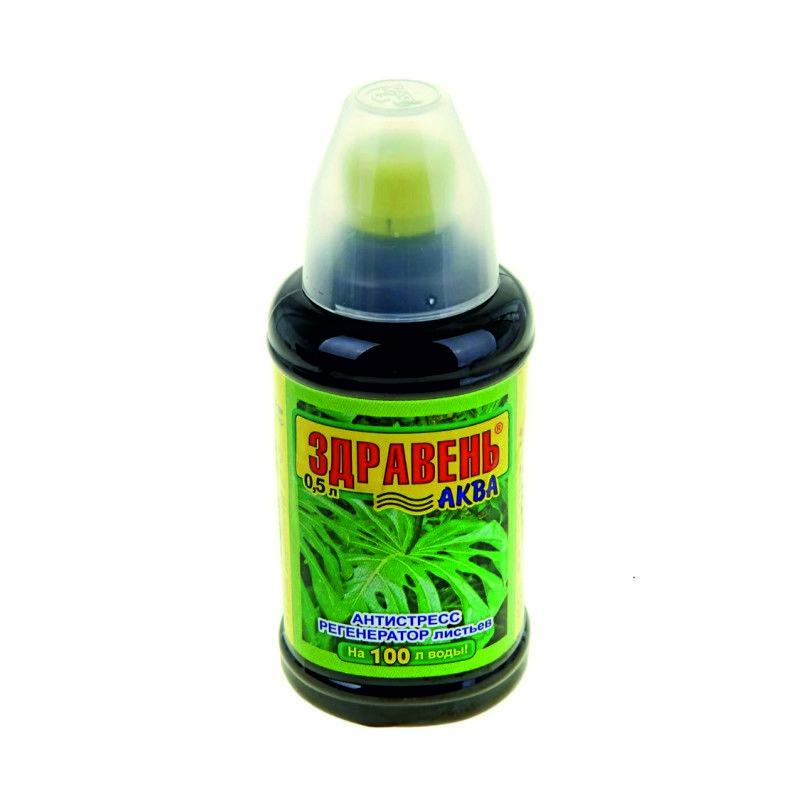 «Здравень-аква антистресс регенератор листьев» — жидкое комплексное органо­минеральное удобрение для внекорневых подкормок всех культур при пожелтении листьев в личных подсобных хо­зяйствах и комнатных цвето­водствах.